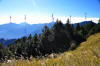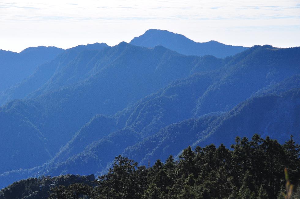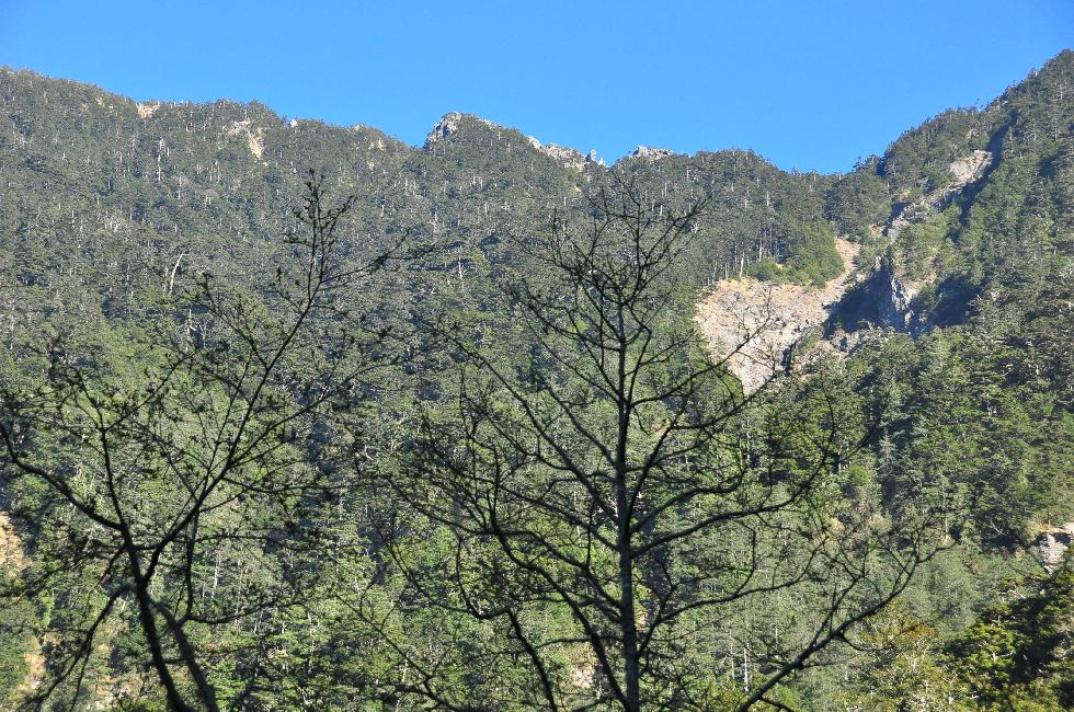 下山方知凌晨摸黑上來的陡峻,幾乎都需拉繩倒退著下去。山路雖險,但沿途茂密蒼翠美麗的鐵杉林,讓人驚嘆之餘,多少也舒緩一下陡下過程中緊繃的神經。途中忽然見一位年約六十幾歲的男性山友上來,步伐穩健,不急不徐的往上爬,一問之下,原來是來單攻的。見他年事已高,卻還有如此過人的體力,真叫我們欽佩不已。
