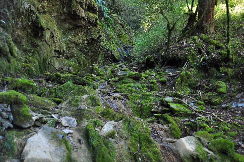 回程何先生跟Bryan走得飛快,一路都沒看到人,直下到最後水源,方見他們已在那裡休息多時。今早摸黑經過時還無緣一窺美麗的溪谷風貌,馬上卸背包拿著相機來捕捉。冰冷的溪水在岩石間湍急的流動,清澈見底,讓人忍不住想下去沖個涼快!坐在巨石上,望著投射入溪谷間的陽光,耳邊聽著溪澗發出的天籟,深感爬山人的幸福~。