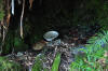大夥們馬上卸裝整理營地,帳篷搭好後,阿煒負責炊煮晚餐,我和Bryan則找水源去。第一水源就在營地續往前續行約三公鐘處,水源前的下切很陡,需拉繩下去,下去後往右上方上去就看得到。左前方深谷中溪水聲隆隆作響,但並非取水之處。拿著容器在碎石累累的邊坡上裝水,水量不大,但確是穩定乾淨的活水源,早知道就不用那麼辛苦從吊橋那裡背水上來了…。