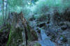 13:00起身續行,15分鐘後經木質電線桿,步道一路爬升。在我們緩慢的行進當中,忽見去單攻的那位山友已經下來了,速度之快,令我們詫異不已!除了佩服之外還是佩服~。小心翼翼橫越過幾段危險的腰繞路段後,我們在14:33來到塔次基里溪支流,再休息15分鐘。因為過溪後,就是最後的一段爬坡,到大禹嶺還有225公尺,爬上此坡就可以高唱凱歌。