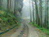 午餐簡單吃個泡麵後,便再往另一個目的地「對高岳」出發,這座位於祝山北側的山頭,在風景區內有兩條路線可登臨,一是從祝山觀日樓循「對高岳步道」過來,這是最傳統的路線,路況也最好。另外一條就是上午經過塔山第一登山口時的右岔步徑,我們沿著眠月線鐵路回走,到第一登山口後進入,越過一個小山坡,來到祝山線鐵道,再順鐵道往祝山方向上走,行約10分過一道橋樑後,在彎道左側即見綁有登山路條,從路條處入小山徑不久便來到一片山葵園,經山葵園後即開始進入比人還高的箭竹,順著山腰鑽著箭竹林約三分鐘即可接抵從祝山來的傳統對高岳步道了。走這一條捷徑,省去了不少再繞回沼平車站走祝山林道上登的時間,不過因大多行走於鐵道,行進間需特別注意是否有火車通行。