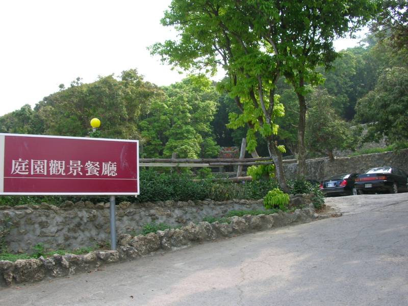 一路下到營區前登山口後,取右順著柏油路往山海宮的方向走,整條路上許多單車族的騎士在這裡進出,可見柴山西側的臨海道路也是單車族們的最愛。大自然就位於山海宮續往北約一公里的地方,順著柏油路行約15分來到通往大自然的主岔路口,入口道路一分為二,直行往海軍陸戰隊營區,左側才是往大自然的路。取左下行約五分終於抵達目的地,左邊有一間佔地頗寬廣的餐廳,不過可能還不到營業時間,都沒有半個人。右側高地上的大樹是一處休息區,而對面海岸則有一獨立隆起小山頭,山上立有一座椎形地標,頗為醒目。
