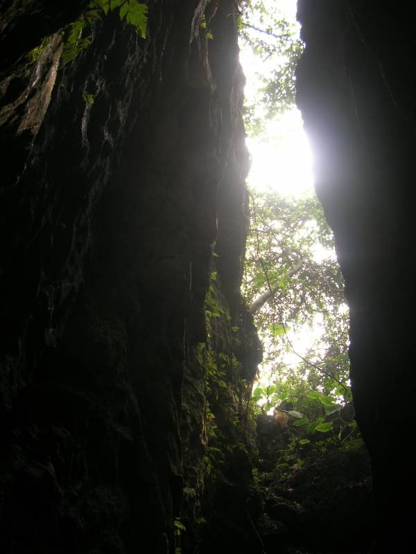 遊奇妙谷沿途有兩處洞穴可順道一探,洞內鐘乳羅列,怪石鱗次櫛比,非常具有看頭。不過因岩壁陡峻,把手及踏足點甚少,雖有繩索可攀附,但因落差不小,曝露感甚大。欲探洞者,建議還是結伴同行,相互扶持照應,並作好確保,量力而為,免得下得去卻上不來…。