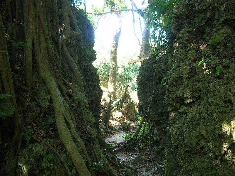 本文中所介紹的這處花園則是在猴岩附近,四周皆被礁岩及樹林所隔開,入口處在觀猴亭旁邊(其實在柴山已猴滿為患,處處是猴蹤,觀猴已不必特地跑到此了~)。當穿過迂迴的岩壁後,一般人都會為眼前美麗的景觀所吸引,讓人來到此花園,第一眼就有發現桃花源之感。這裡的花木均透過特別的修剪,形成各種美麗的曲線造景,穿梭其中有如置身綠樹所構成的小型迷宮般,應該是有心人每天在維護。看起來雖然看起來頗賞心悅目,但過度的人為開發,實非山林之幸~。