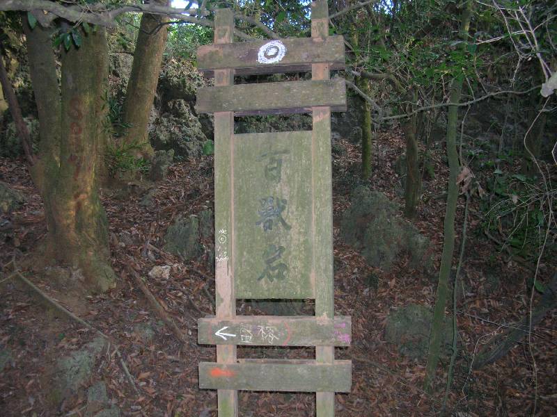 位於柴山中心地帶的百獸岩,如果有走過南北縱貫線的山友應該不會陌生才對,其位置大約在日軍四口灶北側,山豬洞附近。百獸岩標示木牌因立於縱貫線旁邊,立牌處為全線最寬廣平坦的區域,綠蔭茂密,林相甚佳,每次經過這裡總不由得放慢腳步欣賞。然除了大片的七里香,及不起眼的珊瑚礁岩之外,似乎看不到何為百獸岩?