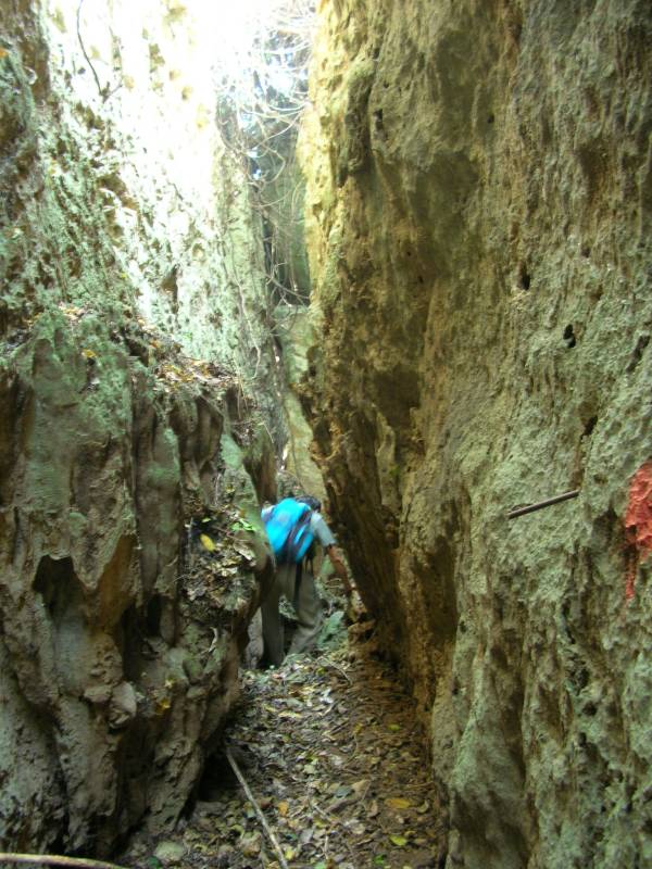 一個上午下來,真可以說用緊張刺激、驚呼連連來形容!許多秘境我們幾乎都走較罕無人跡的路將它串聯起來,千曲百折之中時有柳暗花明又一村之感。傳統木棧道上熙來攘往的遊客絡繹不絕,但除此之外的樹林間,卻是人跡罕至。絕大多數的人來爬柴山,大概都是步道途中一些熱門休息區坐坐喝個茶就走了,印象中的柴山除了擾人的台灣獼猴;不怕生的松鼠,大概不會知道柴山竟然還有這麼多鬼斧神工的景觀吧。見安仔一路赤腳走在銳利的珊瑚礁岩上,步履輕鬆自在,真令人驚嘆!也感謝他熱心的帶領,讓我們飽覽柴山壯觀的峽谷、岩洞、深溝等天然美麗,收獲頗豐。
