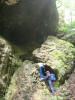我們選擇從迴旋谷進去,攀越過驚險刺激的一線天後,再從另外一端往大深谷的方向前進。以前聽國源兄說,過了一線天有一路可通往猴區亭,但之前曾與文仔、賓仔一同試著走,但因找不到路只好又原路回來。直到上禮拜經國源兄親自帶一遍後,雖然是反方向而行,但已對這附近地形全然了解。所以這次再帶賓仔來,便選擇從迴旋谷經一線天往猴區亭行走。