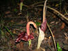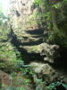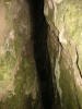 穿越一線天後,在前往猴區庭的途中,取左前往大深谷。抵達深谷上方,望著深邃寬闊的峽谷,還是不減它憾人的氣勢。穿過繩索護欄,拉著黑色電線垂降,自從有了上一次探勘的經驗,這次行來感覺駕輕就熟多了。抵達深谷下方,望著四周高聳的鐘乳石岩壁,落差約五、六層樓高,岩壁上附生許多耐陰蕨類等植物。然而最壯觀的應該是右側的鐘乳石岩壁了,一道道垂流狀的碳酸鈣石灰岩,櫛比鱗次間形成一大片美麗的天然石雕,看了不由得讚嘆造物者的巧奪天工。連賓仔都嘖嘖誇讚,直說真沒想到柴山還有如此美麗秘境,真是開了眼界。