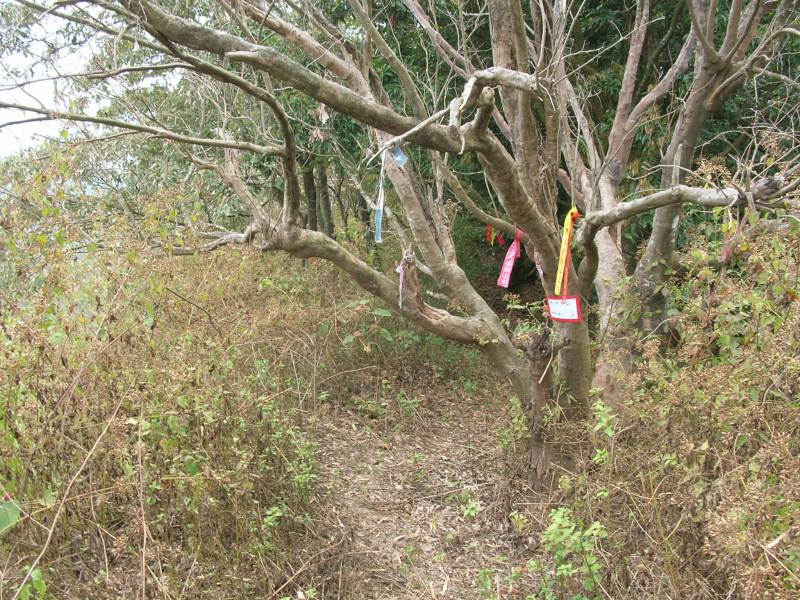 紅禾林山入口位於台28線47.8 K六龜農會新威辦事處左側旁巷道,順水泥行約1.2 K來到其登山口,上登約3分鐘即可達山頂,山頂立有三等三角點基石一座,山頂向東面展望不錯,可眺望真我山、網子山、鳴海山 、尾寮山等連峰,荖濃溪流域彎延於山谷之間,非常美麗。