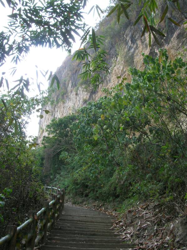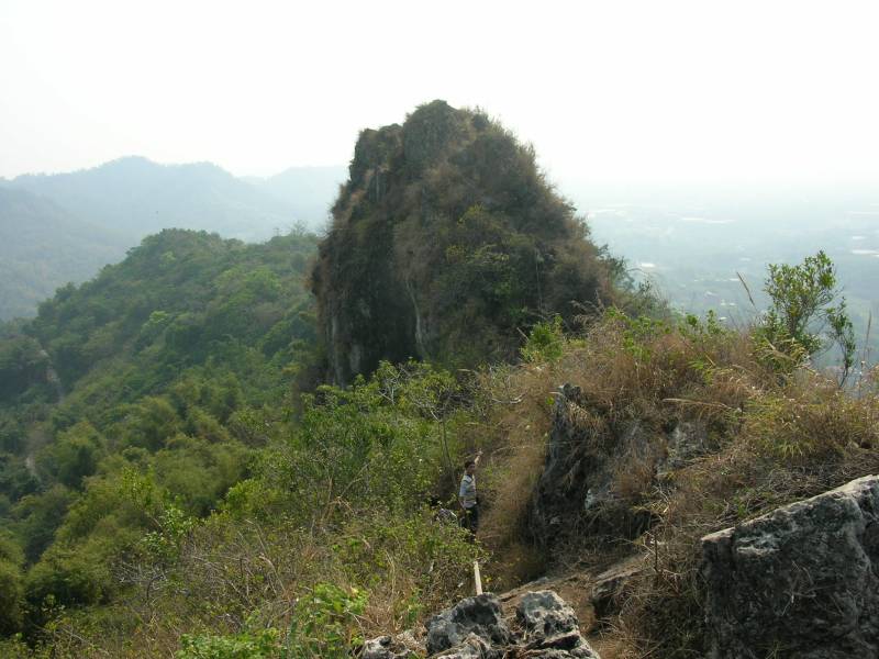 利用假日回鄉下的機會,下午閒來無事便驅車前往一登,一路從岡山經燕巢往金山的方向開,抵達第一登山口時見停車場已停滿車輛,便再往前開幾十公尺至第二登山口,停好車輛後開始順著寬敞的水泥階級上走,半途遇到四位青少年男女也來此遊玩,應該也是第一次來,因他們還向我問路。行約二十幾分鐘即抵達雞冠山最高點,在山上頂瘦裬上眺望,展望極佳!東側月世界的風光盡收眼底,中寮山座落於東北方,南二高筆直的從山底穿越而過。向西望去可眺望大小崗山,南面為雞冠山尾裬之部,其間還有涼亭座落其間,其三角點基石就立於涼亭東側觀景台旁。