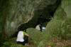 等我和文仔來到拉繩處,他們已都爬出去了,此處也是猴洞的出口處,當靠近出口時也逐漸有了光線,原來出口是在猴洞尾端的正上方,高度約在十幾米高的位置,洞口非常狹窄,幾乎垂直的岩石上綁有許多繩索。我們拉著繩索上攀,並小心翼翼的攀著岩石,最後終有驚無險的爬出動外,當看到陽光綠樹的剎那,內心蕩漾著無比欣喜,可見人類在潛意識裡,懼怕黑暗、渴望光明,但卻又喜好冒險與探索未知的心,這種矛盾的心理實在頗令人玩味。